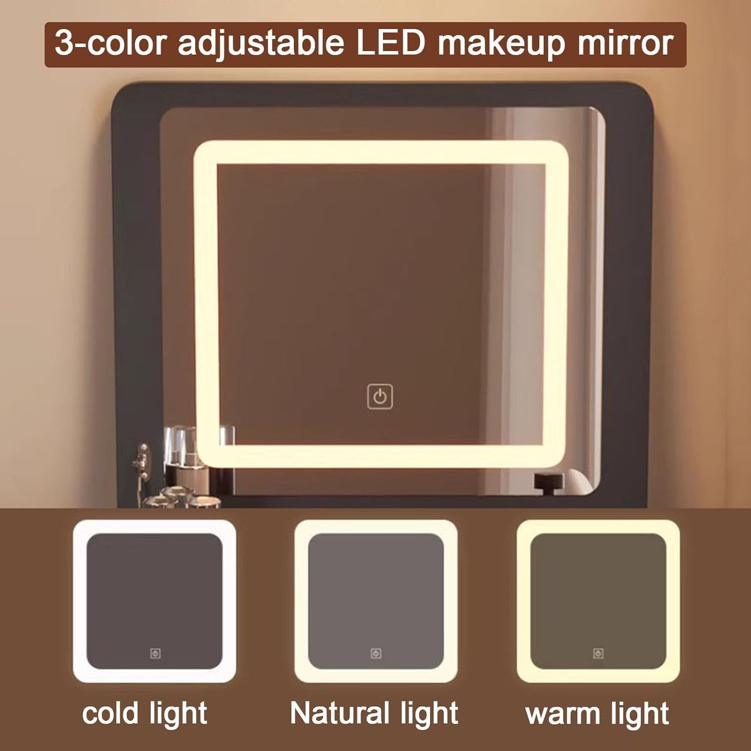 3-i-1 Sminkbord med spegel, pall & förvaring – Glasbordsskiva & kompakt design