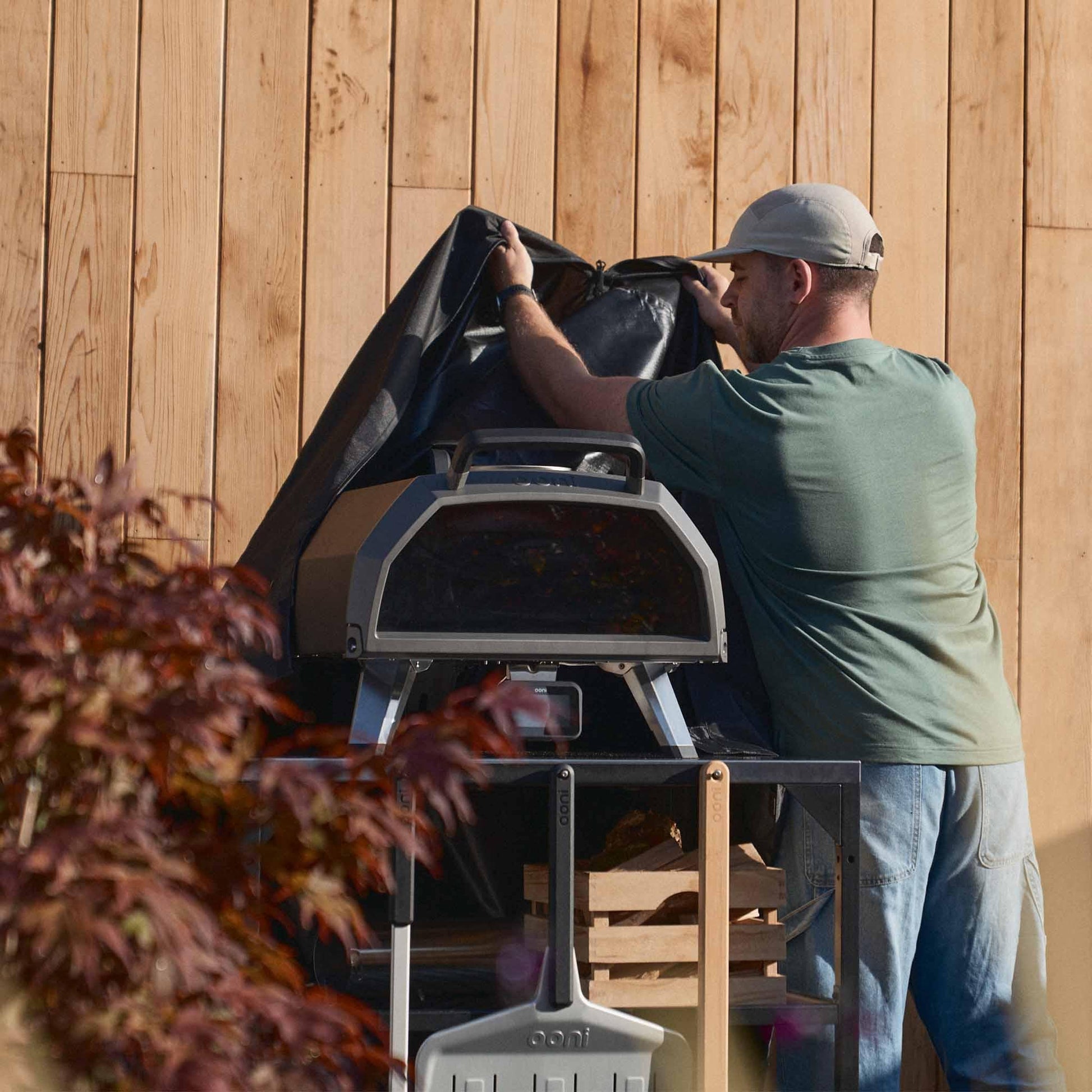 Protect your outdoor kitchen from the elements with this easy-to-fit cover, designed to slip over both your Ooni oven and Large table.