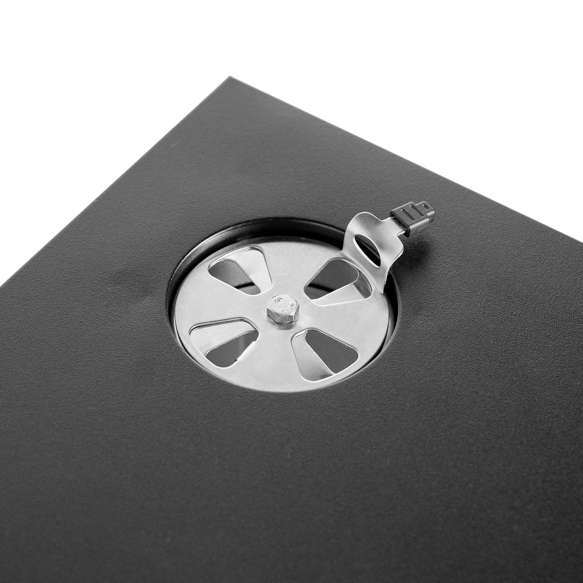 - Lockable door latch to retain heat and smoke inside the fully insulated smoker body